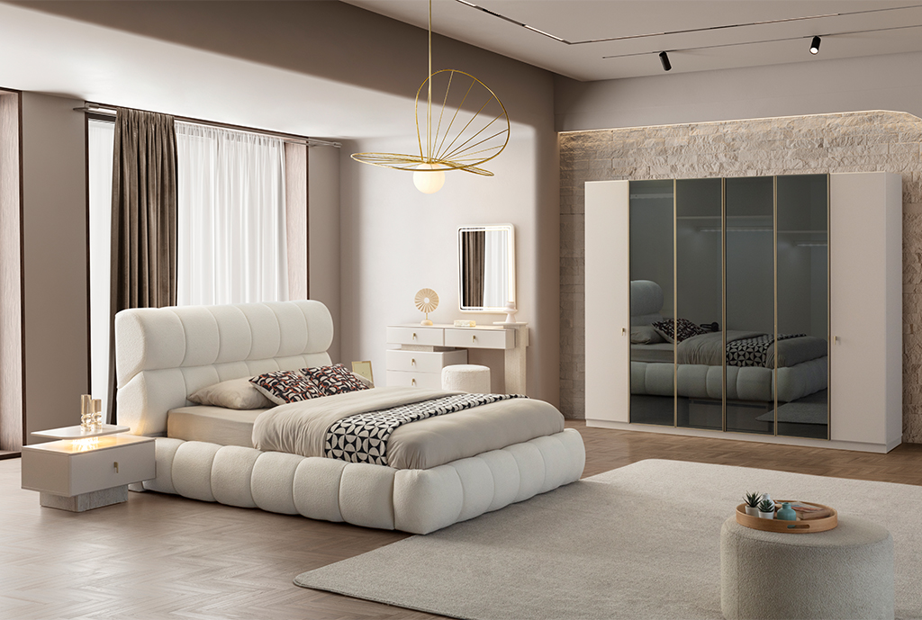 | Takım İçeriği | 1 adet 6 kapılı dolap, 1 adet şifonyer ve ayna, 1 adet bazalı karyola ve 2 adet komodinden oluşmaktadır. |