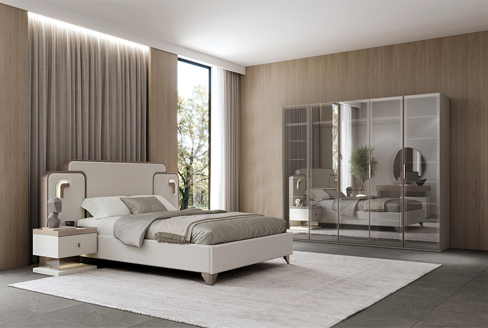 | Takım İçeriği | 1 adet 6 kapaklı dolap, 1 adet 160/200 bazalı karyola, 1 adet şifonyer ve ayna, 2 adet komodinden oluşmaktadır. |